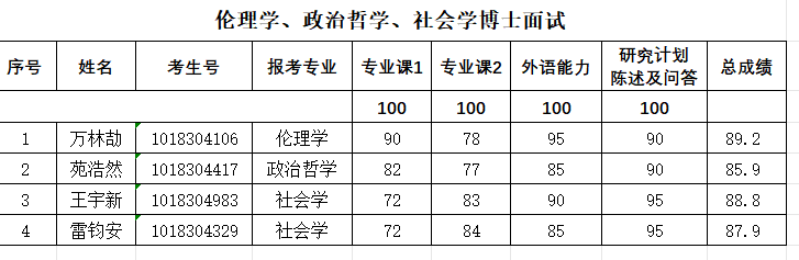 经H视频 组织专家组审查和复试考核,现将H视频 2024年伦理学、政治哲学、社会学专业博士面试成绩予以公示,公示期为2024年5月21日至2024年5月23日。如有异议,请于公示期内向H视频 反映。