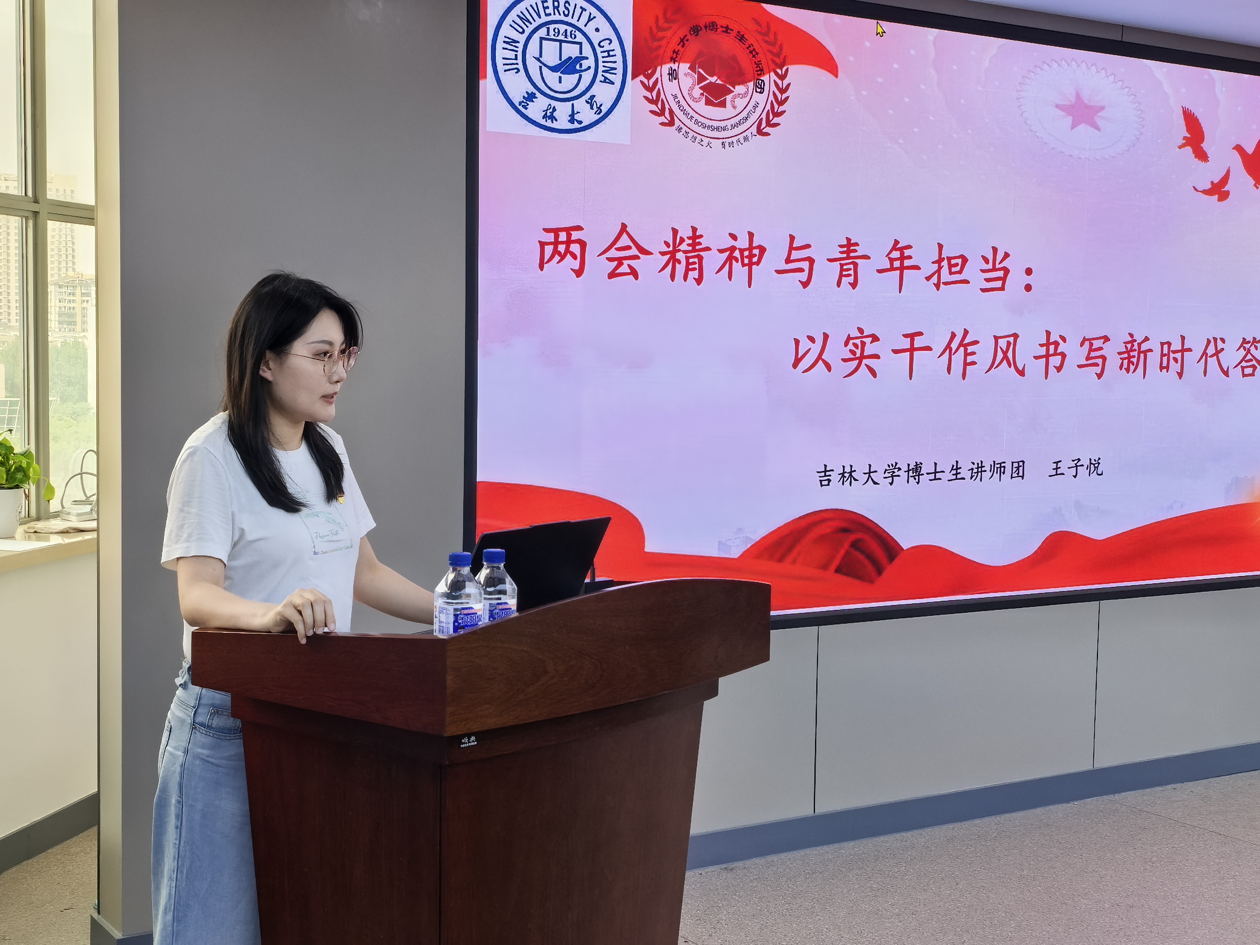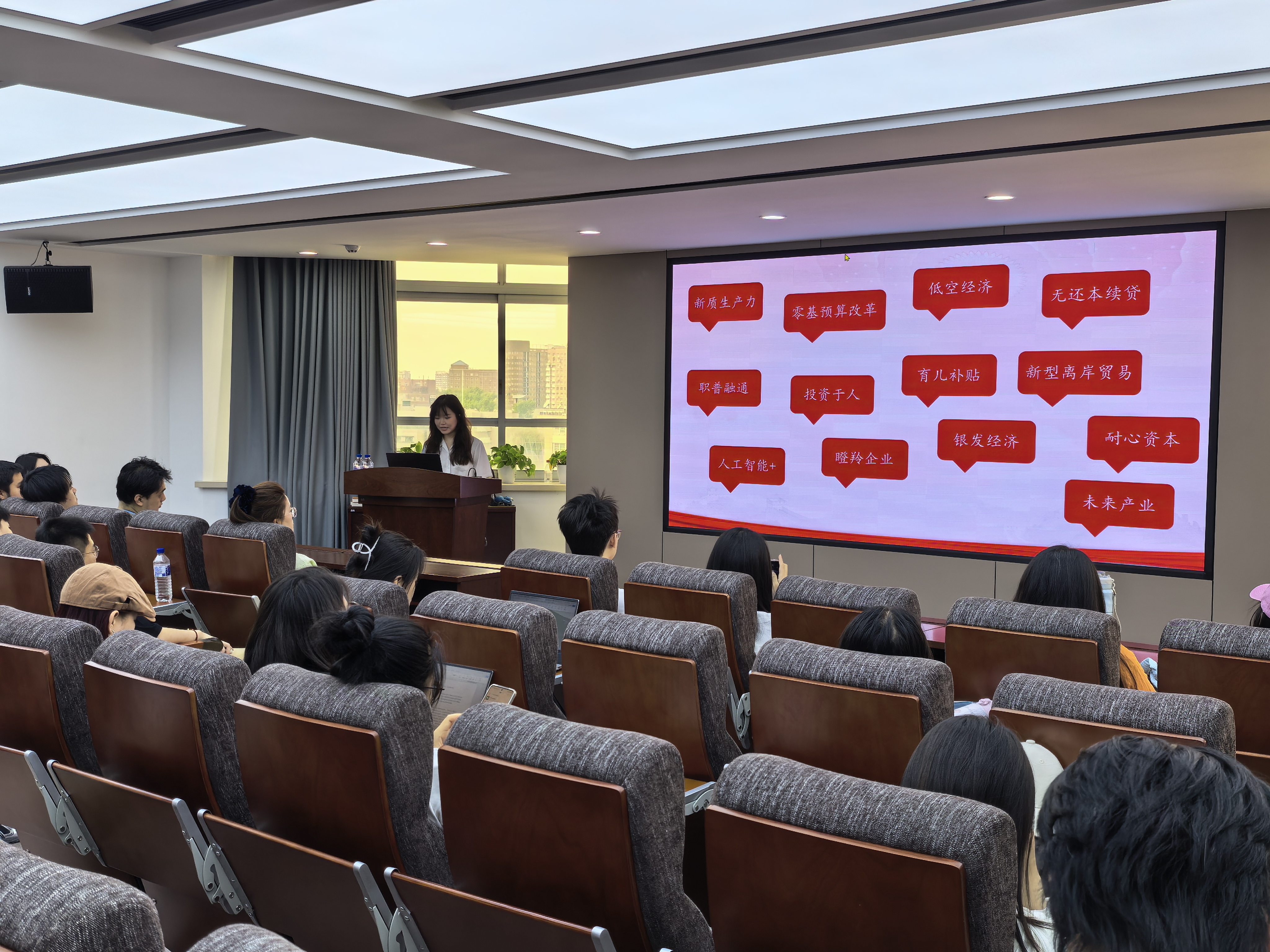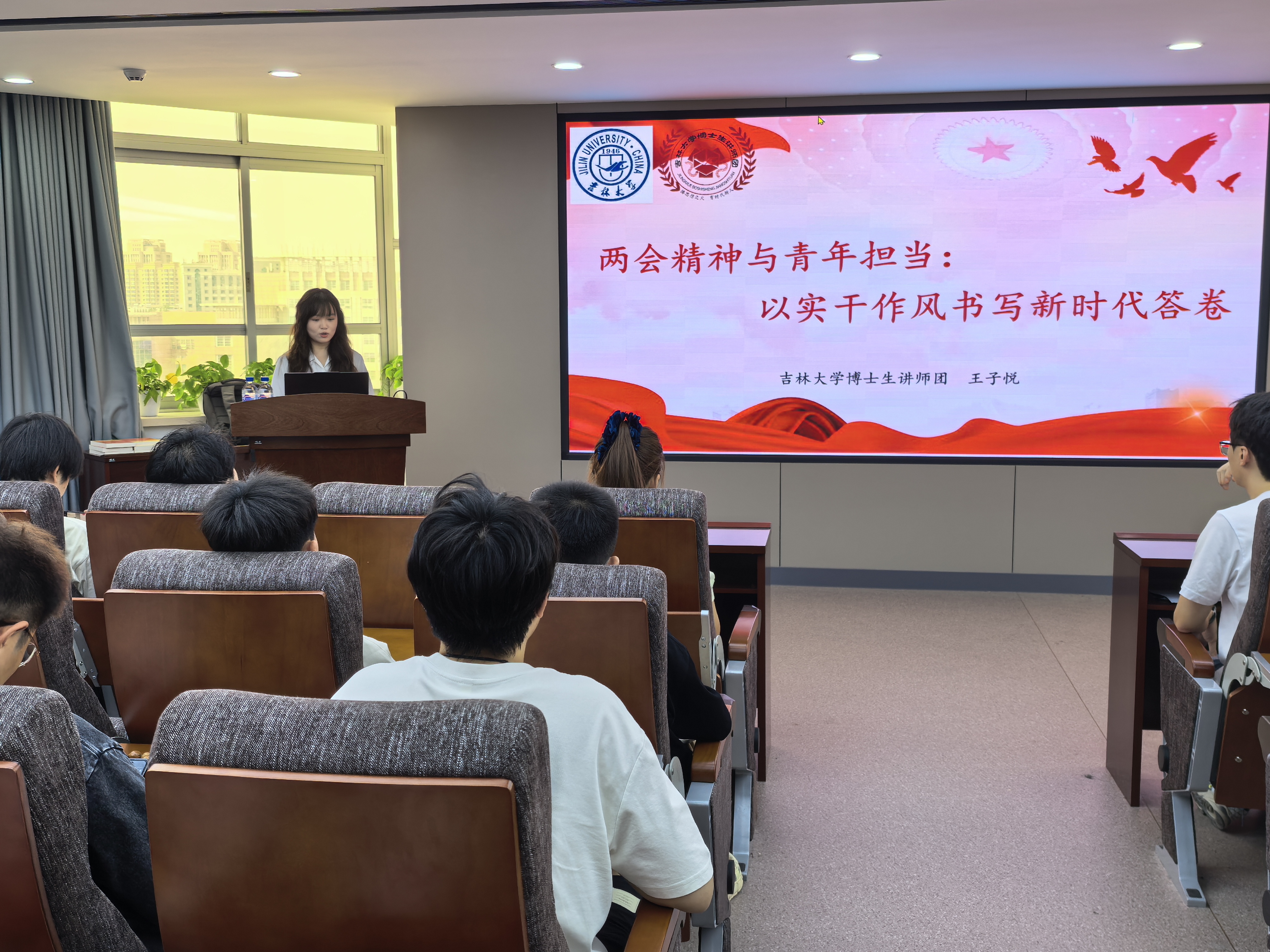 博士生讲师团成员、2024级政治哲学博士研究生王子悦同学,在东荣大厦904会议室进行题为“两会精神与青年担当:以实干作风书写新时代答卷”的主题宣讲。此次活动由学院辅导员、博士学生第一党支部书记于洋主持,全体学生党员参与学习。