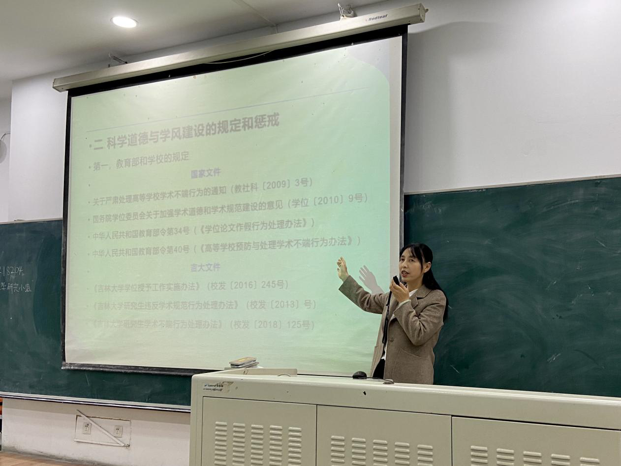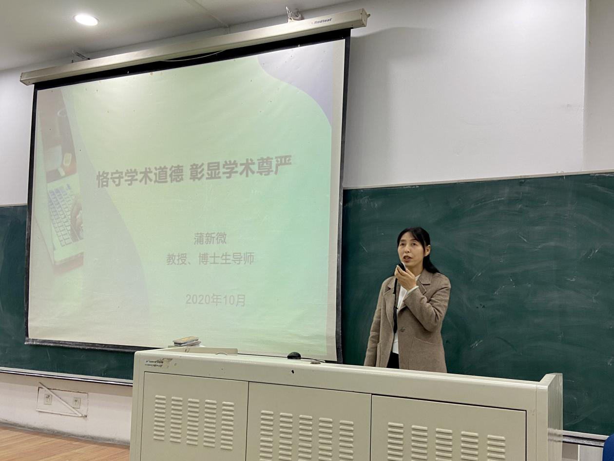 的蒲新微教授为同学们开展了主题为“恪守学术道德,彰显学术尊严”的学风教育专题讲座。