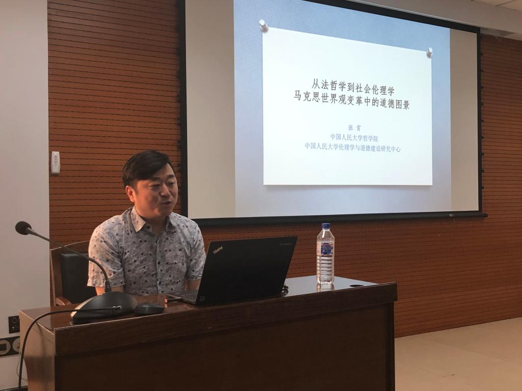 师生做了题为“从法哲学到社会伦理学——马克思世界观变革中的道德图景”的学术讲座。本场讲座由副院长曲红梅教授主持,哲学系李慧娟教授出席了讲座。
