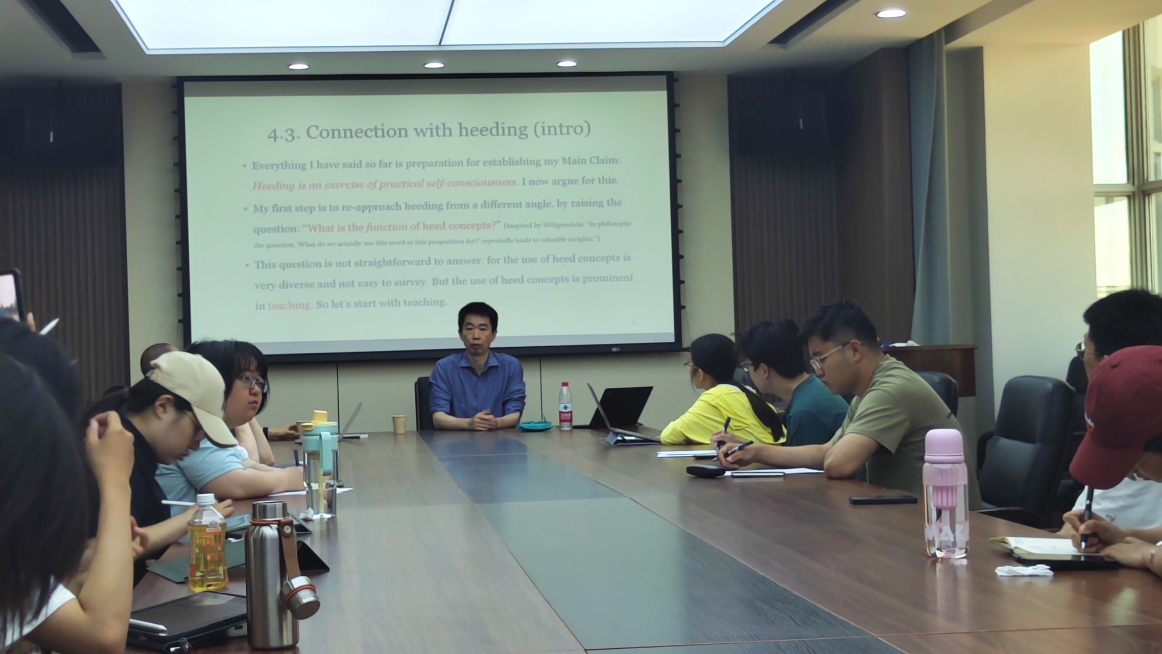 唐浩教授的讲座包括四个部分内容。其一是介绍安斯康姆式的实践知识,其二是回顾赖尔对“注意”(heeding)的讨论,其三是简述康德的“统觉”概念,其四是基于以上背景对“行动”概念的讨论。唐浩教授认为,“注意”既是倾向性的,又是即时性的。对于建构一种关于行动的理论,“注意”概念有三重功能:使行动被做“好”;整合诸子行动为一个行动整体;把行动和关于行动的自我知识关联起来。讲座之后,唐浩教授同H视频