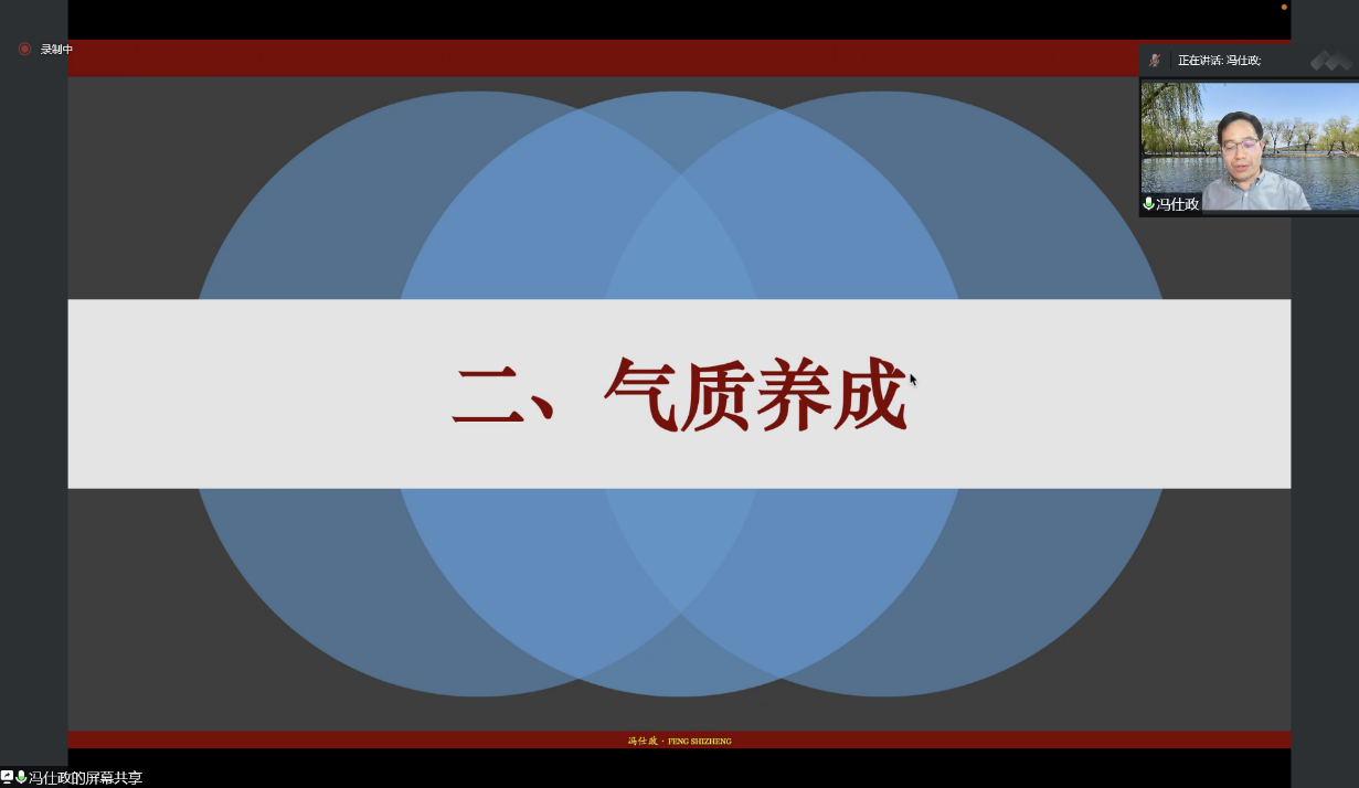 讲座伊始,冯教授首先提出了目前高等教育教学的核心是“人”的培养,而气质是培养“全人”、“总体的人”必不可缺少的要素。