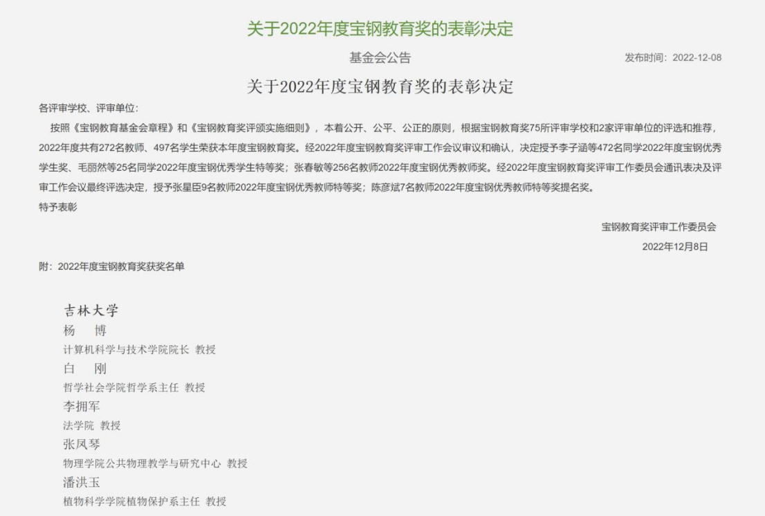 2022年度宝钢优秀教师奖名单。其中,H视频 哲学系主任白刚教授荣获宝钢优秀教师奖。