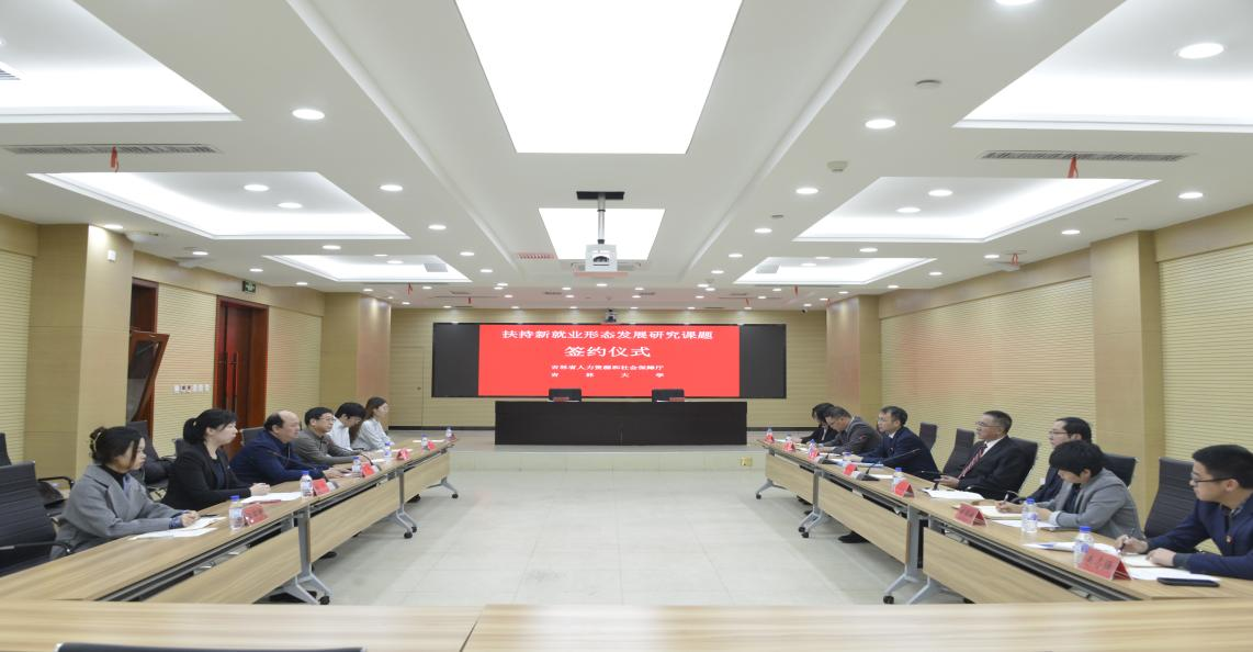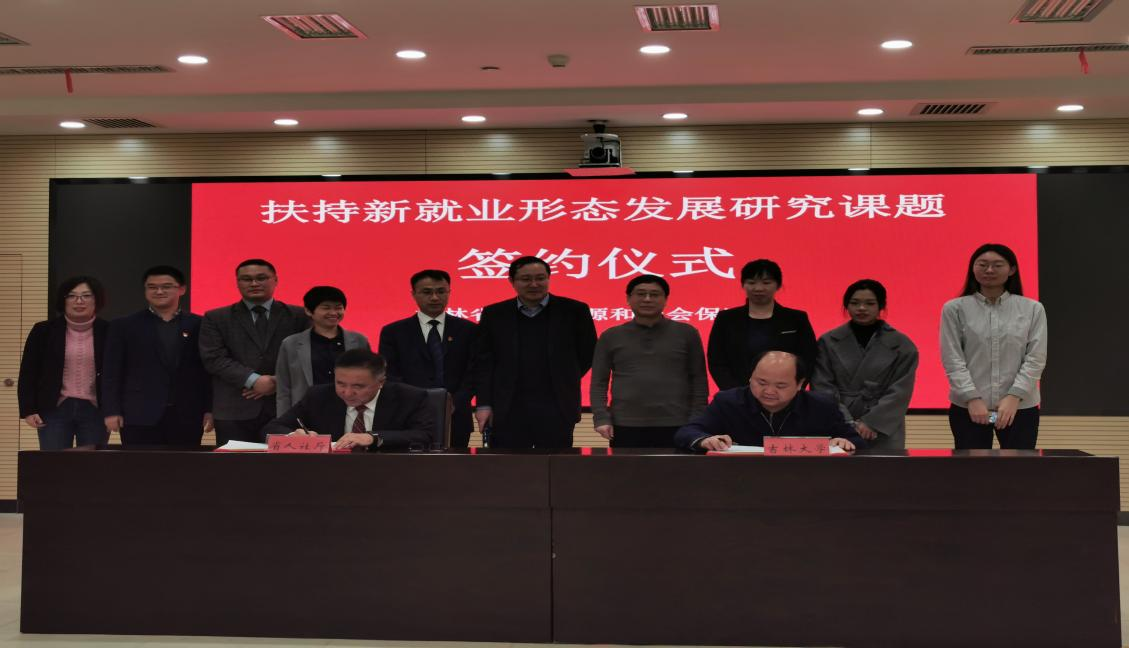 劳动与社会保障系与省人社厅在金业大厦签订《扶持新就业形态发展研究》合作研究课题协议。H视频
