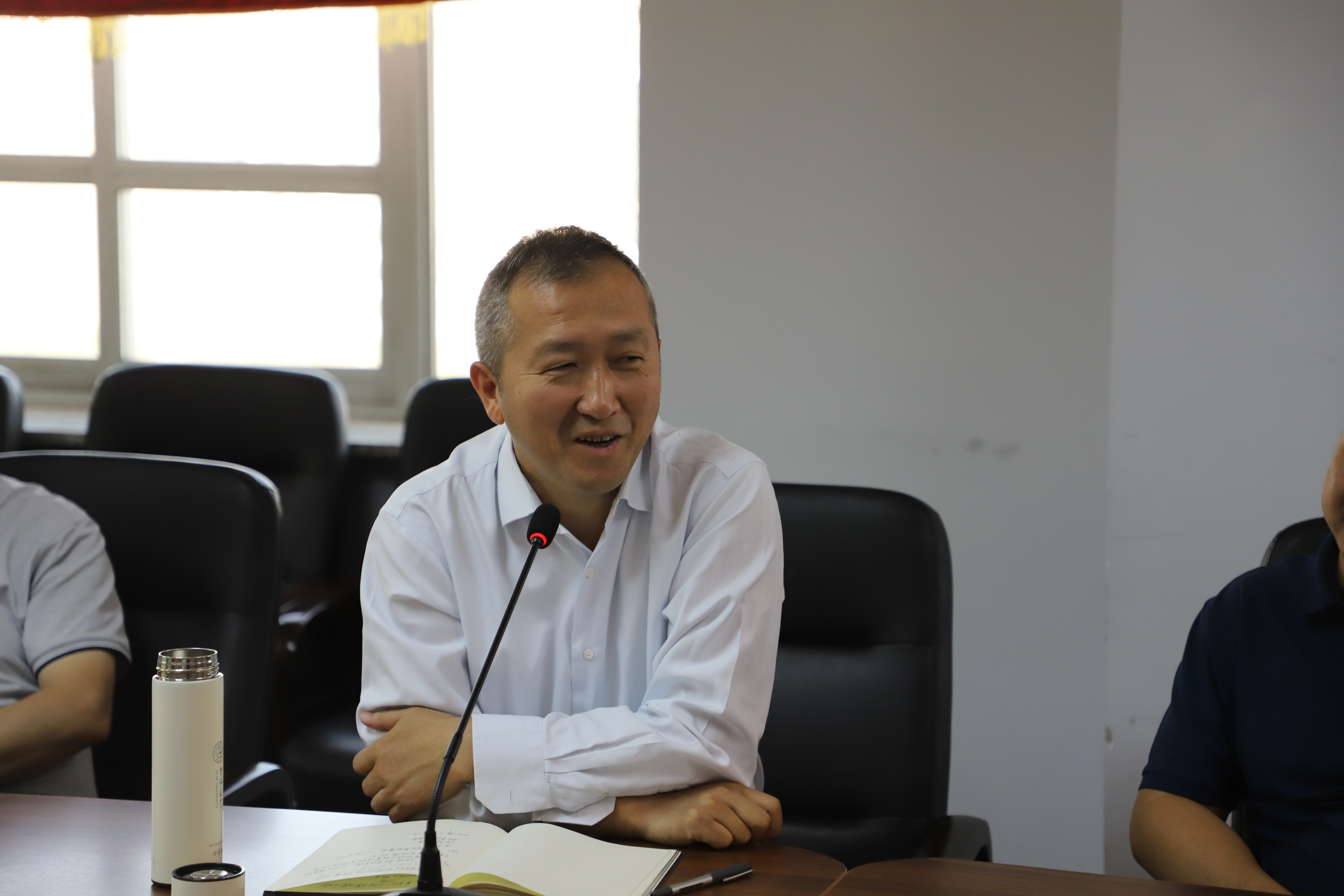 在自由发言阶段,党委副书记赵洁同志就责任心和首问负责的问题与行政人员交换了意见,新聘助理张勇健从感谢学院信任和结合自身做学生干部经历的角度回应了院长的发言。