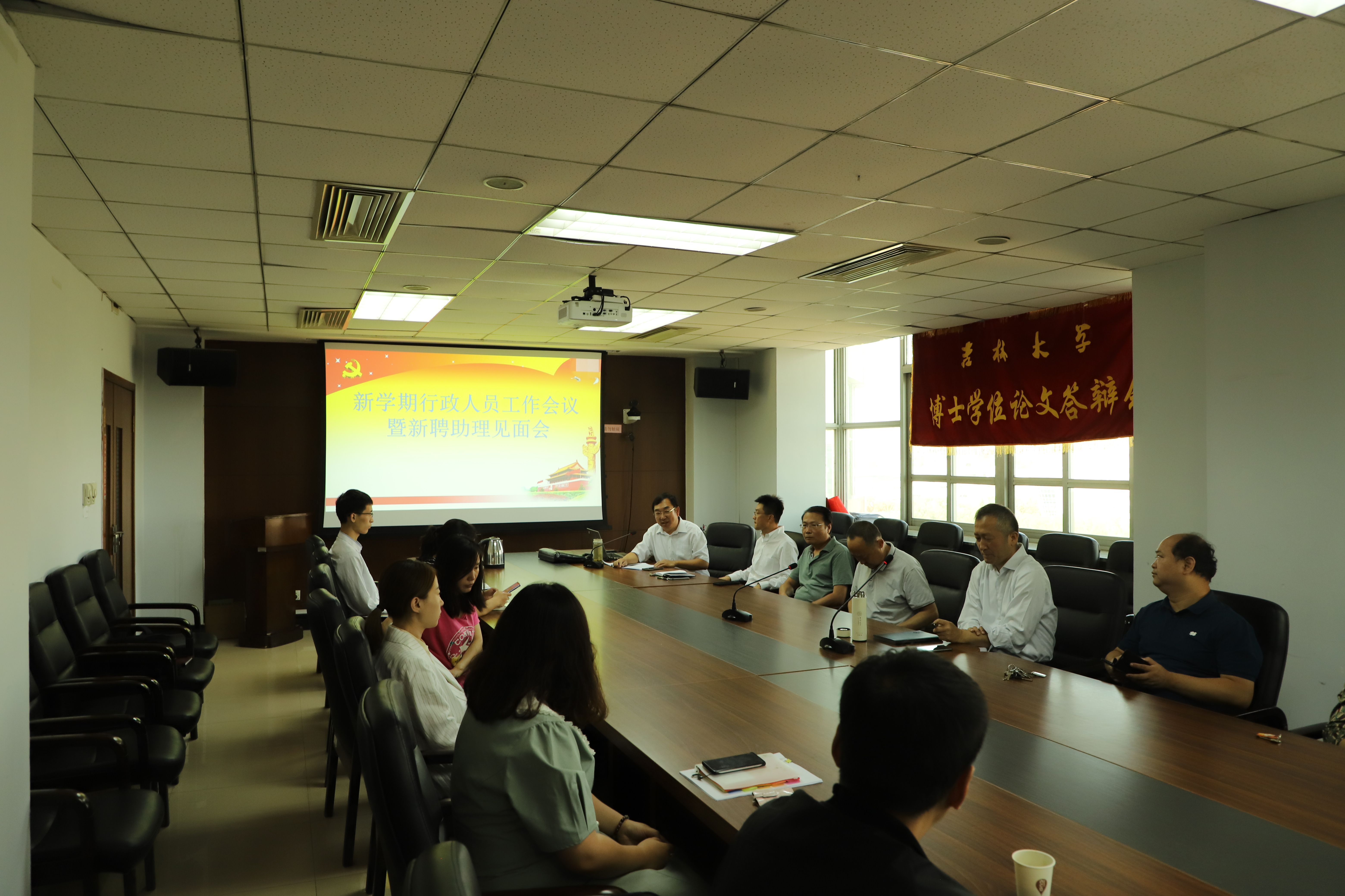 召开新学期行政工作会暨新聘助理见面会,学院领导班子成员、全体行政人员和新聘短期助理参加了会议。会议由行政副院长朱文君主持。