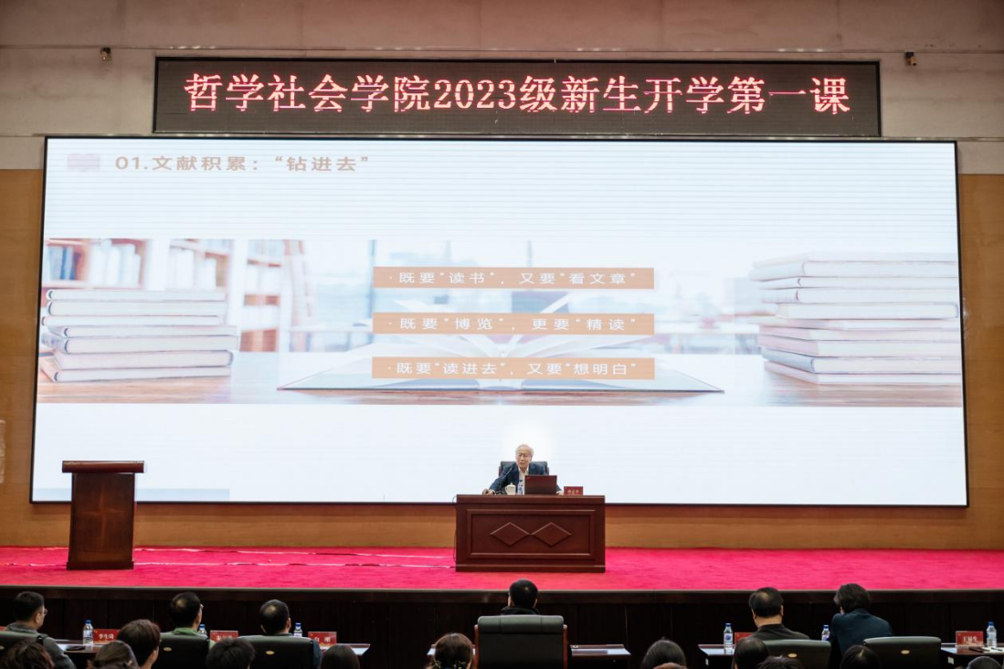 2023级新同学讲授新学期开学第一课,带领学院师生交流学习体会,引导学院师生赓续优良治学传统,开展扎实专业学习。