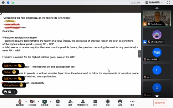 国际化示范基地海外优质课程于线上成功举办。主讲人为来自英国基尔大学的Sorin Baiasu教授。
