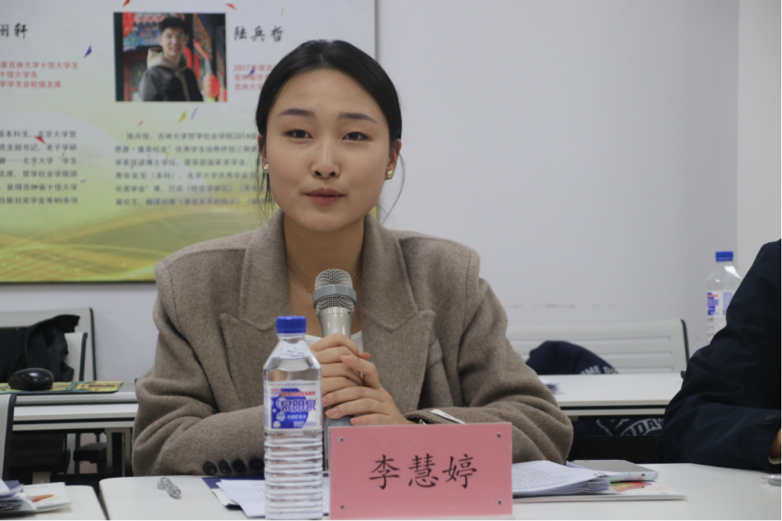 在几位老师的介绍过后,出席本次会议的“四院”学生代表北京大学城市规划与设计学院研究生党支部书记刘奔腾,全国青马学员、H视频