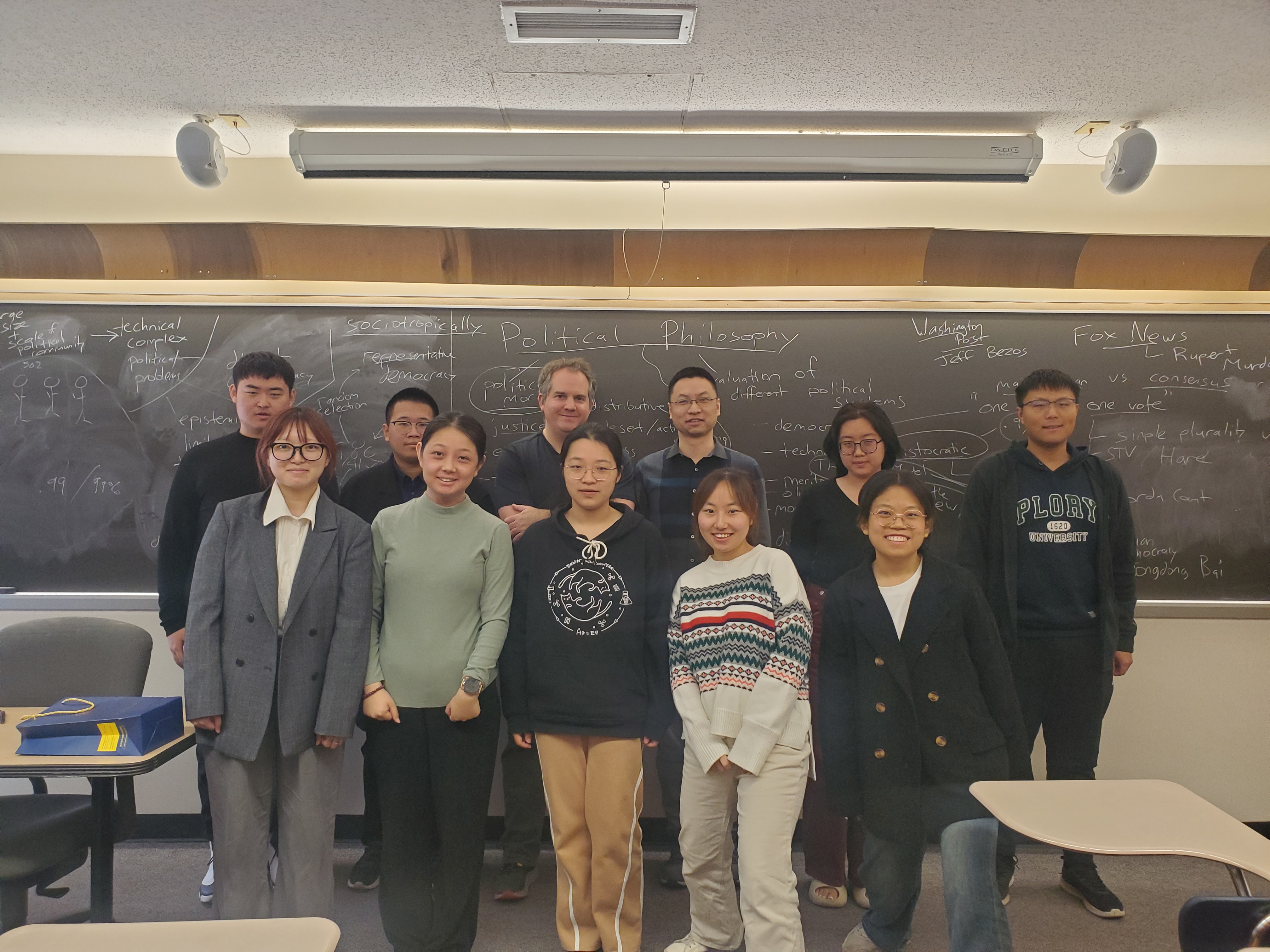 当地时间1017Alex Guerrero教授为大家带来了Political Philosophy(政治哲学)讲座,他深入浅出的语言和贴切形象的举例使同学们理解了原本生涩难懂的哲学术语。