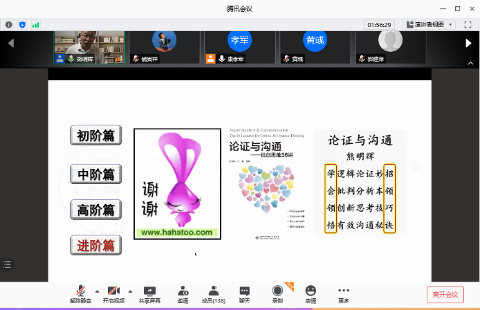 名家系列讲座(第110场),讲座题目为“论证与沟通的技巧”。讲座在腾讯会议平台举行。除H视频