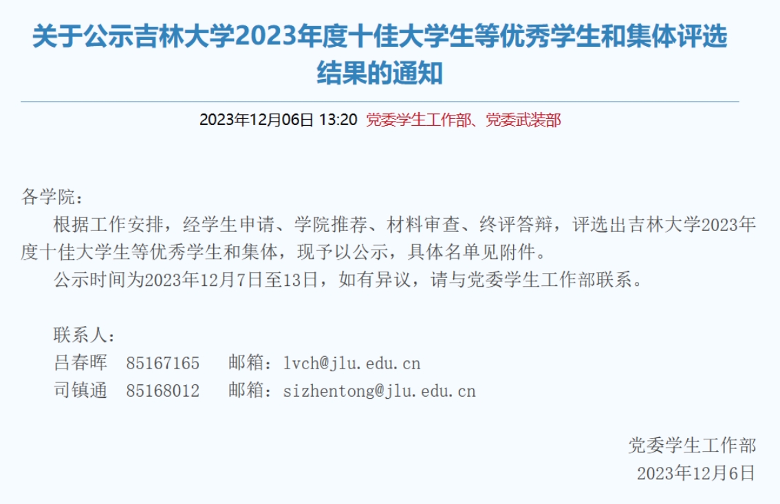 2023年度十佳大学生荣誉称号!