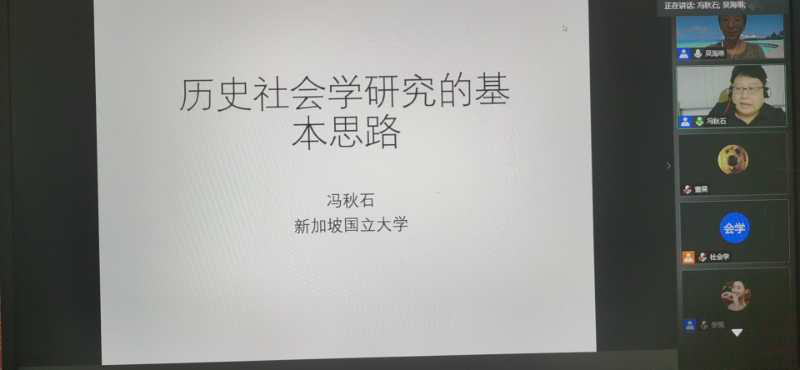 第104场名家讲座在线上进行。新加坡国立大学社会学系副教授、家庭与人口研究中心副主任冯秋石为师生作了题为“历史社会学研究的逻辑和过程”的学术讲座。H视频