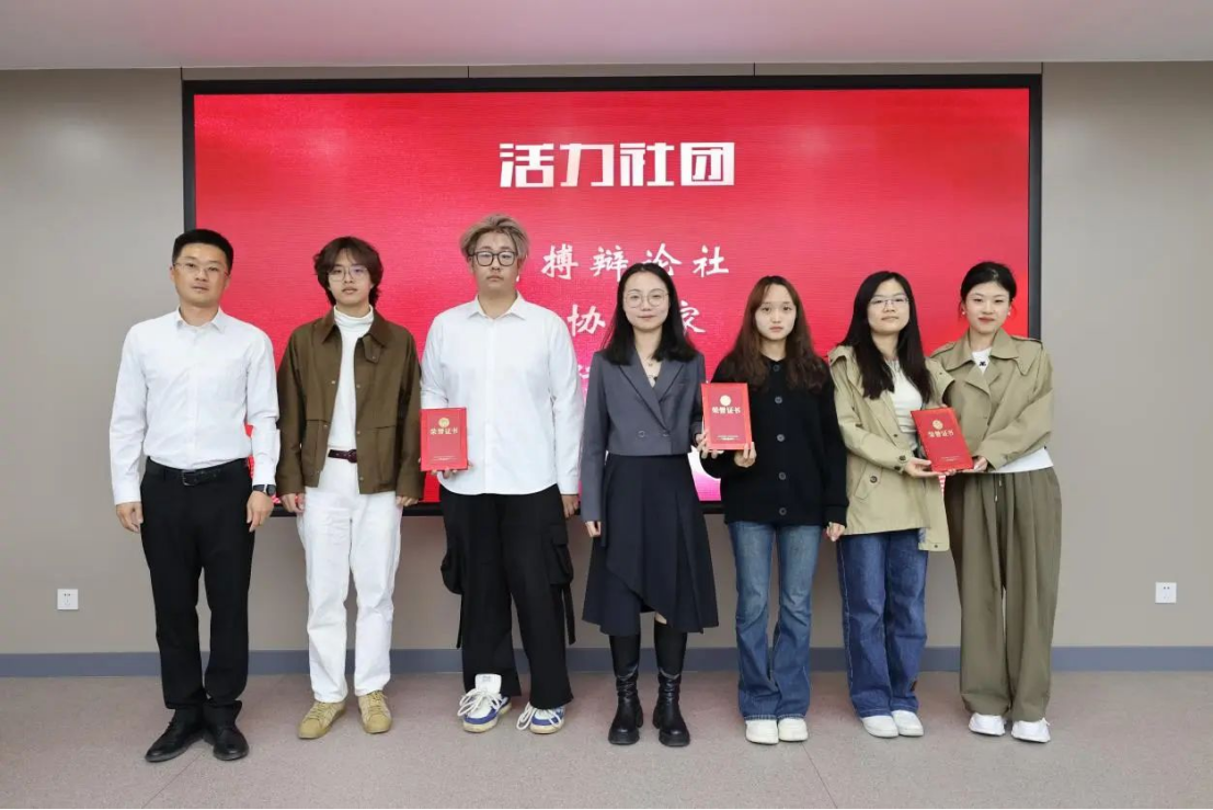 大会第三项,与会师生们共同观看了学院“活力社团”风采展示视频。明理求真、舌战群儒,智搏辩论社在充满智慧与激情的辩论赛场上不断启智求索,刮起青春的“头脑风暴”,七夺“先锋论坛”桂冠;“创业奋斗、‘就’在吉林”, 合协一家在充满机遇与挑战的求职路上不断传播经验,助力众多学子提升综合素养;知行合一、身体力行,知行协会积极依托学院学科专业特色优势,将理论宣讲带到街头巷尾、将调研报告写在田间地头、将情绪疏导送给朋辈亲友。视频结束后,学院党委副书记兼副院长刘培强老师为获得“活力社团”荣誉称号的社团代表颁奖。