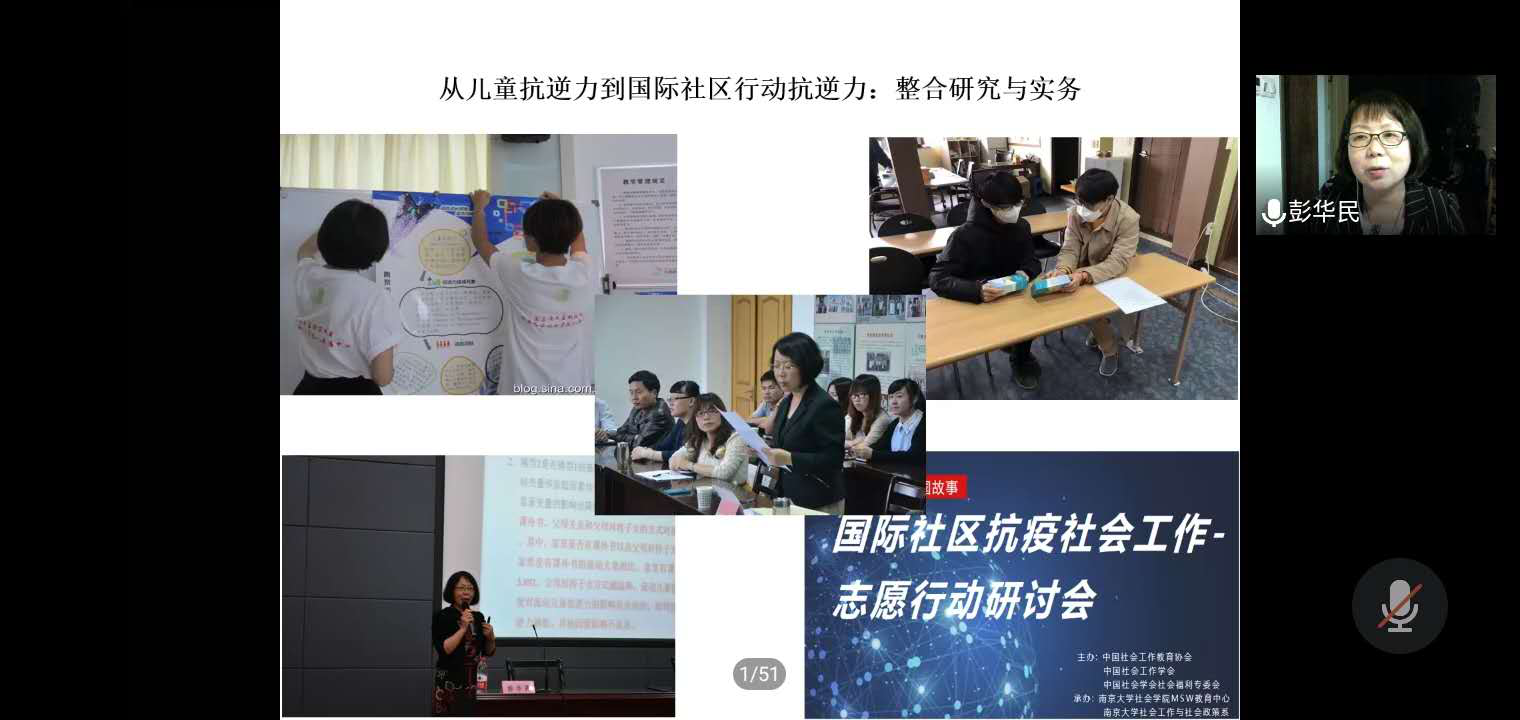 第92场名家讲座通过腾讯会议的形式在线上举行。南京大学社会学院,社会建设与社会工作研究院院长,中国社会工作教育协会副会长,彭华民教授作了题为《基于抗逆力框架的国际社区抗疫行动》的学术讲座。H视频