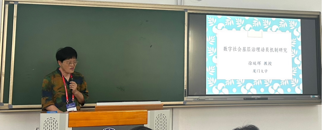 论坛第二单元共有六位发言人。厦门大学社会与人类学学院副院长徐延辉教授作了题为《数字社会基层治理的动员机制研究》的报告。她结合中国基层政府的制度情景和数字平台建设的实践场景,将TOE框架由三要素拓展为TOEI(技术—组织—环境—身份认同)四要素,认为基层社会治理活动存在技术动员、组织动员、制度环境动员和地域身份认同动员四种机制。