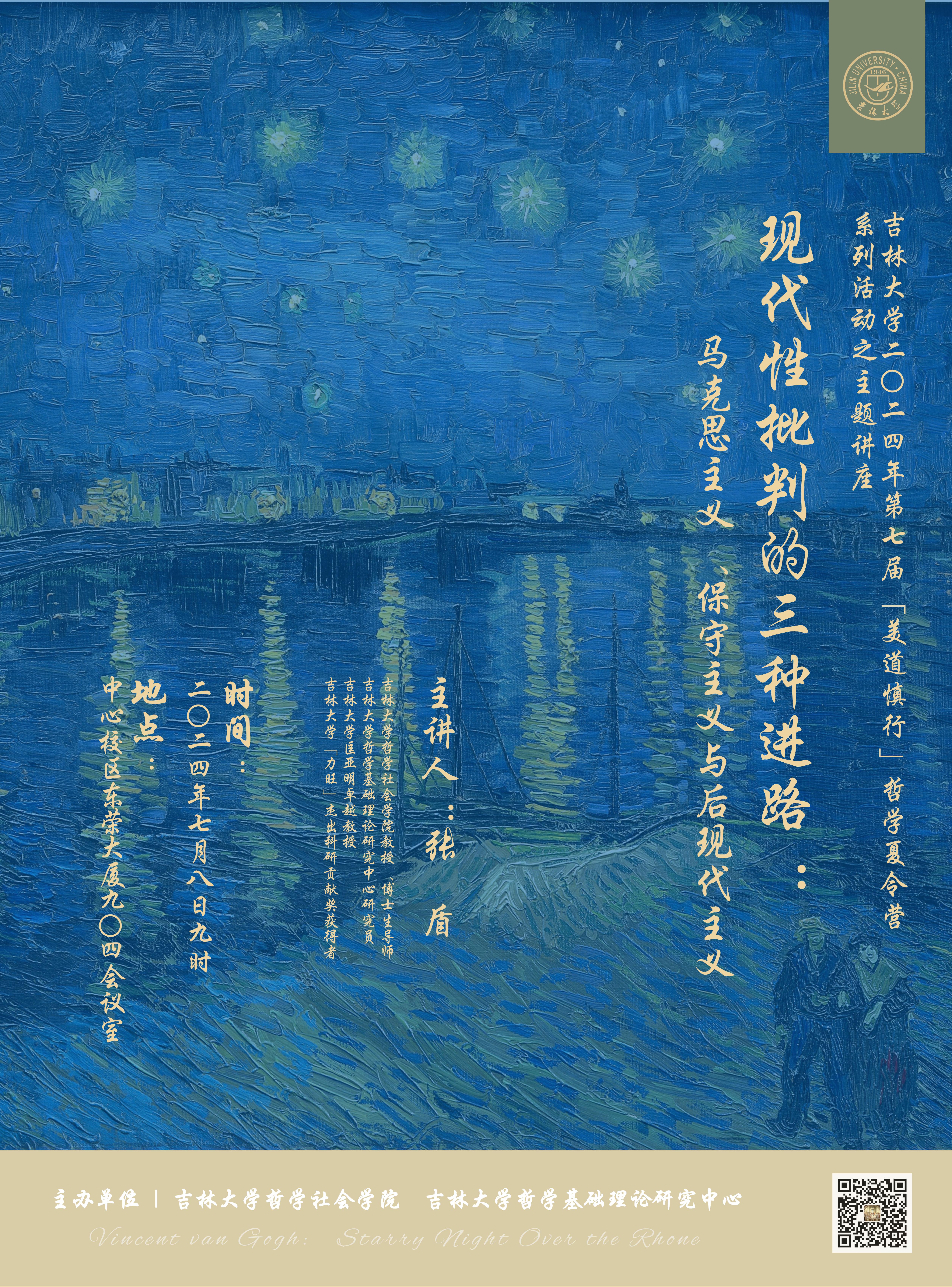 的哲学教育和哲学训练,为其提供一个与吉大哲学系学习与交流的平台,同时也为了更好地展示吉大哲学系的哲学传统,让更多的同学了解吉大哲学,2024年7月8日上午8:30在H视频