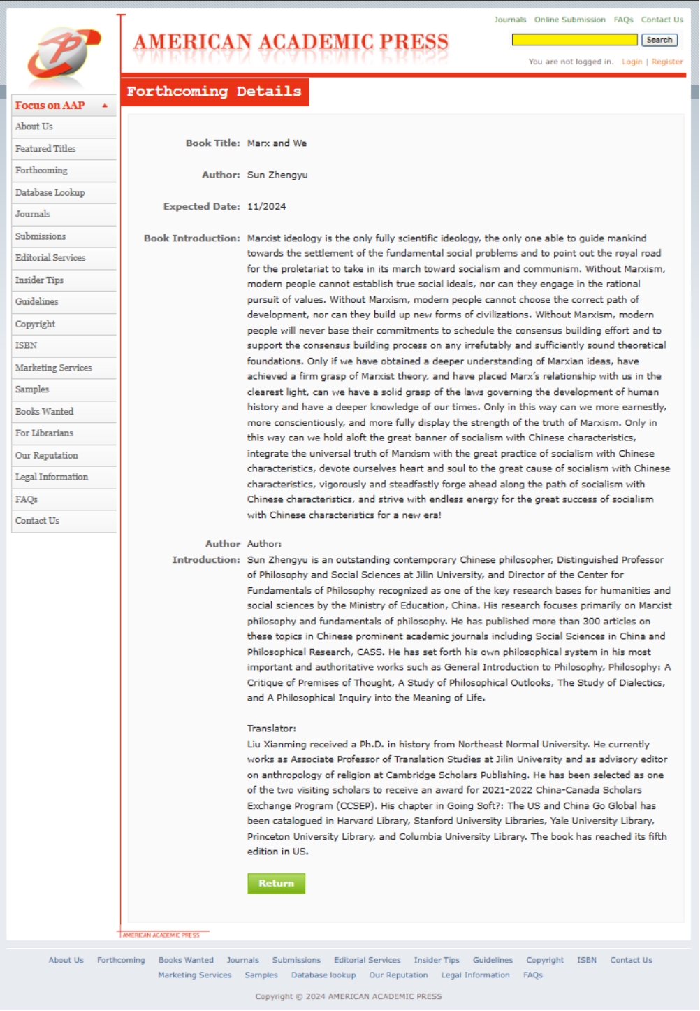 (孙正聿教授著作《马克思与我们》英文版出版社网站,
