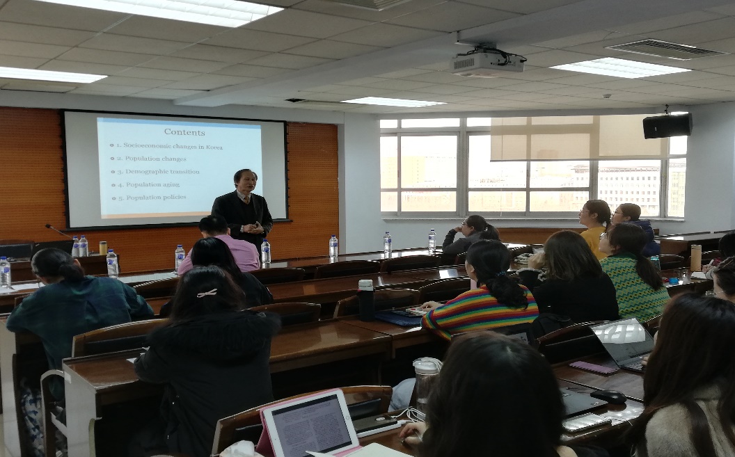 邀请,韩国东国大学荣休教授金益基在东荣大厦举办了学术讲座。金益基教授是韩国东国大学社会学系退休教授,曾任中国人民大学新奥国际杰出教授,长期从事社会学、人口学、老年学研究,一直关注东亚社会变迁,成果丰硕。