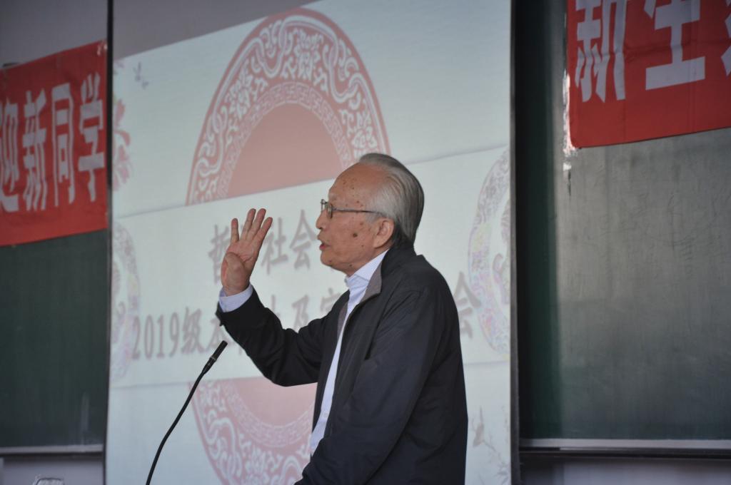 在院长田毅鹏恳切致辞之后,孙正聿为19级新生们发表的精彩发言。他以自己敏锐的洞察力与绝佳的学术水平,巧妙回答了初入大学的学生及其家长最为关心的问题。他首先回答的是“学什么”这一关键问题。他认为,对这个问题的回答,应该从两方面来思考,一是进入大学学什么,二是进入专业学什么。梅贻琦教授曾言,“所谓大学者,非谓有大楼之谓也,有大师之谓也”。大学教育不同于小学的描述启发与中学的解释教育,它注重于批判、反思与创新,致力于培养创造性人才,培养人独立思考、独立解决问题的能力。大学注重于学术,助力学子成才,为学生提供必要的学术氛围与环境。在进入大学的两个目的中,“大学要使人作为人而成为人”这一目的便在于此,大学学习,使人拥有现代教养意识,使一个人在适当的年龄接受适当的教育,给人以全方位的熏陶,提升一个人的综合素质。