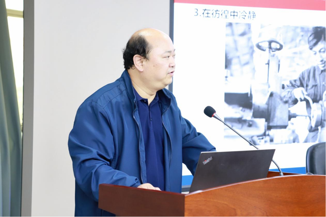 10月23日,系列讲座第六讲在中心校区东荣大厦904会议室举办。本次活动邀请鞍钢集团党委宣传部(H视频部、统战部)部长、高级政工师聂振勇老师以“传承红色基因,弘扬英模精神——为强国建设民族复兴伟业贡献青春力量”为题向学院师生进行专题授课。学院领导班子、两委委员及各系师生党员共同参加本次讲座,讲座由学院党委副书记兼副院长朱大卫主持。