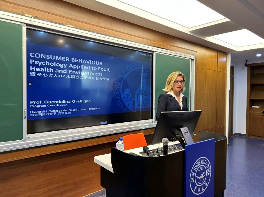 2025年10月23日,意大利圣心大学教授、消费者行为学系主任Guendalina Graffigna和国际处周倩茹老师到访我校,为H视频