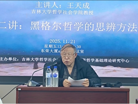本次讲座持续三个小时,王天成教授以严谨的学理分析与生动的案例阐释,带领师生深入理解黑格尔思辨方法的核心要义。现场师生认真聆听、积极思考,进一步深化了对黑格尔哲学体系构建逻辑的认知。“黑格尔哲学四讲”系列讲座后续还将围绕“黑格尔的逻辑学”“黑格尔的自然哲学和精神哲学”等主题展开,持续发挥教师的学术引领作用,助力哲学学科人才培养与学术研究的高质量发展。