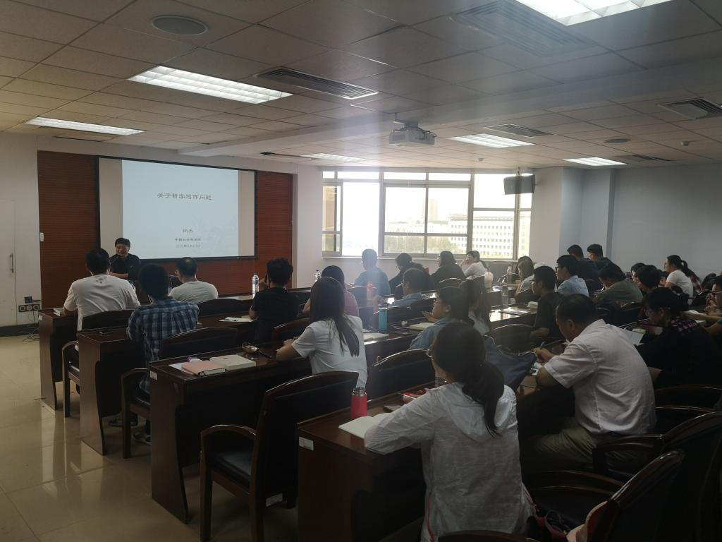 尚杰教授围绕“为什么写作是一个哲学问题”进行主题演讲。在主题讲解之前,尚杰教授首先针对同学们学习学术论文写作的问题分享了自己的写作和阅读经验、心得。尚杰教授认为,哲学思想是一种书面语,必须用文本的方式呈现出来。深刻的思想肯定是清楚的,写不清楚是因为没想清楚,而想清楚则涉及到读书和写作这两个环节。关于读书,尚杰教授分享了自己的四个经验:要读外文文献;直接读经典原著;抓文本主题与独立思考;关联式阅读。关于写作,尚杰教授提到,修辞是次要的,要抓住即兴创作,勤学多练,丰富知识背景等。在分享完写作和阅读经验之后,尚杰教授针对“为什么写作是一个哲学问题”这一问题,进行了三方面的讲解。第一,哲学是写出来的不是说出来的。尚杰教授旁征博引,通过对从亚里士多德到萨特等哲学史著名哲学家关于文本、写作和翻译的论述的讲述,说明了哲学写作作为专门的哲学问题在哲学研究中的重要性。第二,哲学如何写作——对所谓学术写作规范的质疑。学术写作的规范虽然具有一定的重要性和必要性,但是过于根据写作规范写作会影响理论的创新和写作水平的发挥。例如一种典型的批评是写作需要有中心主题,但是所谓的中心并不存在。写作的过程是一个疏远的过程或变异的过程,所谓的专注其实也是一种“走神”。写作不能只注重写作规范,还应该体现出个人的写作风格。第三,写作的危险与趣味。尚杰教授通过引证和举例,揭示了哲学写作虚构和脱离实际的危险性,在哲学写作的过程中容易用文字的感觉代替真实的感觉,陷入自我陶醉和自我迷失。尚杰教授指出这种哲学写作过程是一个消极和积极因素兼具的过程。此外,他也指出,思想要成为有趣的思想,哲学写作应该具有趣味性。在讲座最后,尚杰教授分享了许多写作经验和写作方式,并与同学们进行了热烈地交流,对同学们提出的问题予以详细的解答和讲解。