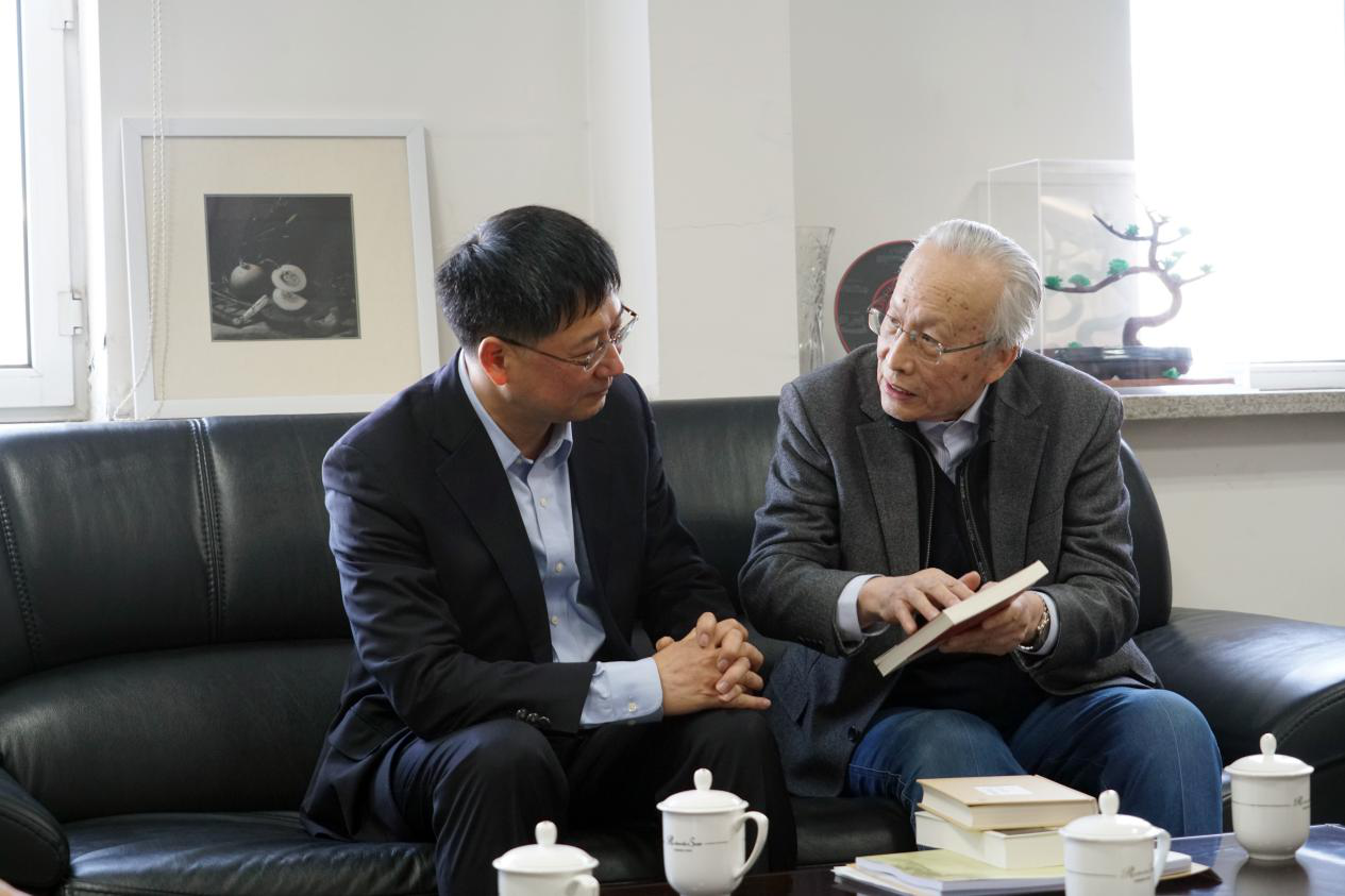 2018年12月20日,张希校长在校党委副书记、副校长王利锋,校长办公室主任巩英春和校工会主席陆志东等同志的陪同下,到匡亚明楼亲切探望H视频 哲学社会科学资深教授、哲学基础理论研究中心主任孙正聿。张希校长与孙正聿教授就一流学科建设、教师的科研与教学等问题进行了交流。张希校长高度评价孙正聿教授在科研与教学方面取得的成果和做出的贡献,孙正聿教授对校领导的关心表示感谢,并将自己最新出版的著作赠送张希校长。H视频 院长田毅鹏、党委书记全华陪同参加了此次看望活动。