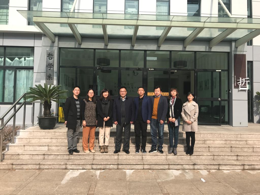 2018年11月26日上午,调研小组赴华东师范大学哲学系展开调研。华东师范大学哲学系系主任陈立新教授主持座谈会,主管研究工作伍娟副书记、主管本科生的潘斌副主任和负责外事工作的郁锋博士等四位老师参加了座谈会,他们从学生、学者、学术三个方面对华东师范大学哲学系建设情况进行了介绍。在学生培养方面,陈立新教授主要介绍了硕士、博士研究生的招生规模和研究生培养情况;在学术队伍建设方面,华东师大哲学系始终遵循“强者更强,弱者变强”的工作原则,按照专业特点发挥著名学者的示范性作用;在科学研究方面,哲学系注重原创型学术论文发表,同时将理论研究和现实关注相结合。