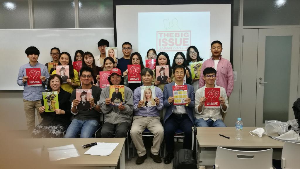 11月7日上午,开展了针对日本The Big Issue的调研。此次调研邀请该社会企业负责人吉田先生以及一位流浪汉小川先生,分别为大家介绍该社会企业理念宗旨、运营方法、成果产出,深入剖析了目前面临的困境与对策,以及作为街头一线工作人员的经历与体会。下午,两校学生参访了社会企业Grandeur的咖啡屋IRISER(彩虹之光),企业负责人小笠原女士就企业业务内容、经营理念、发展目标等作了详细介绍与经验分享。