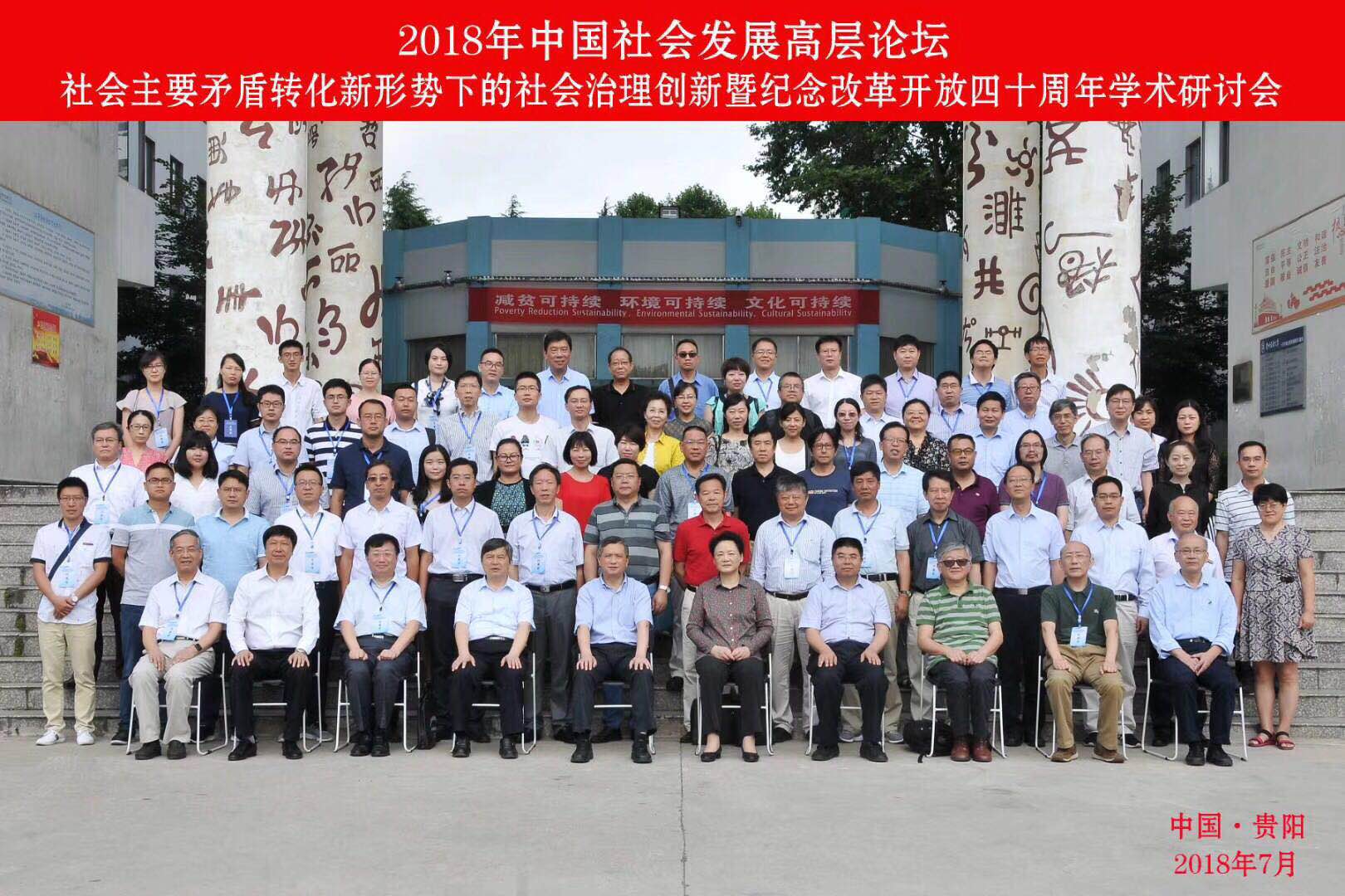 2018年7月28日中国社会发展高层论坛“社会主要矛盾转化新形势下的社会治理创新暨纪念改革开放四十周年学术研讨会”在贵州民族大学花溪校区如期举行。会议由中国人民大学社会学理论与方法研究中心、贵州民族大学、中国人民大学社会与人口学院、贵州省社会科学界联合主办。本次会议针对“改革开放推动中国社会发展的伟大成就和历史经验以及中国社会主要矛盾转化的深远意义、社会主义新时代改革开放的新任务与新战略、不平衡不充分发展的时空展现与社会问题”等相关议题进行深刻研讨。来自全国高校、科研院所、期刊杂志、政府相关部门的专家学者和学生代表300余人参加了此次会议。H视频