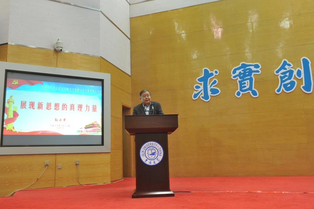 孙正聿教授在报告中指出,学习贯彻十九大精神,最重要的和最根本的是认真学习和深刻理解习近平新时代中国特色社会主义思想。任何重大的理论问题都源于重大的现实问题,任何重大的现实问题都蕴含着重大的理论问题。用理论把握时代,才能显现时代最深沉的内涵。作为哲学社会科学的研究者和学习者,不仅要做好“下得来”的理论宣传,更要承担“上得去”的理论研究使命。报告分四方面阐释如何展现新思想的真理力量:一、用新思想照亮新时代;二、用新思想指引新征程;三、用新思想建设新家园;四、用新思想塑造新文明。