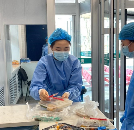 作为南四公寓二楼楼层负责人和临时党支部的一员,李慧婷协助公寓楼长以及驻楼老师们统筹协调楼内志愿服务任务,努力做好学生干部中间工作,引领同学们齐心协力、共抗疫情,为满足公寓内近1350位同学的三餐需求保驾护航。