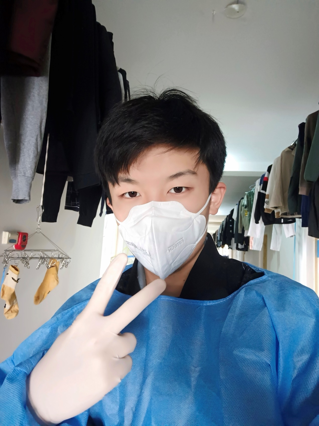 3月13日,封寝第一天,所有人都处于莫大的恐慌与忙乱之中,他在得知征集志愿者通知后,没有考虑个人安危,毫不犹豫报名参加。在整个疫情防控期间,主要负责的是南苑六公寓二层的送餐、送水果、寝室消杀和防疫物资分发等工作,在楼长老师带领下,协调各楼层负责人和志愿者,顺利完成了一次次任务。同时,作为班级工作的负责人,他带头在前,在完成日常学生工作的同时,主动组织成立H视频