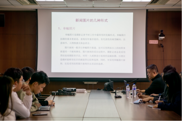 接着,徐立华老师主要从时政摄影、会议摄影和纪实摄影三个方面为同学们带来校园摄影的经验分享。徐老师分别从构图、内容和元素三个角度并结合案例图片为同学们生动地讲述了三种摄影的不同技巧和注意事项。之后,徐老师针对校园摄影的四大特点——关键性、严谨性、规律性、预见性,从拍摄方法、构图技巧、角度选择等方面进行了详细阐述。徐老师嘱咐同学们,相机就是武器,电池就是弹夹,储存卡就是子弹,如果把会场比作战场,面对敌人,武器弹药是赢得一场战役最关键的要素,要检查好设备,始终保持战斗状态。