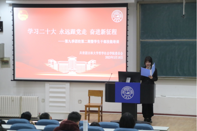 第九季团校第二期暨学生技能培训在经信F区第三阶梯教室召开。此次活动由哲学社会学院团委组织部与办公室联合举办,旨在通过对公文写作指导,常用网站、软件的运用等方面开展培训,进一步提升22级全体同学的综合能力。本次活动由团委组织部罗晴同学主持。