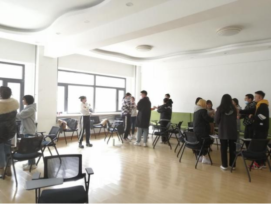 首先进行的是“放松”环节。在准备好的纸片上写上自己今天在活动中的名字并将其放在身上明显的位置上。可以在名字之后加一个自己的兴趣爱好,然后以引导者开始,首先介绍自己的名字,示范一个当下自己最想要做的放松动作,在场所有人一齐喊出示范者的名字,跟着做该示范动作。顺时针旋转让在场的每个人都示范一次,复习记忆。在朋辈学生心理辅导员引导下,让参与者放松身体,同时兴奋状态。