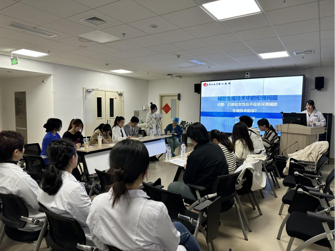 在辩论赛期间,吴乙时医生通过自身实操的案例引出主题:“己绝经患者应该/不应该采用辅助生殖技术助孕”。本次比赛正方由来自吉大二院的覃慧、易鹭和余婉淳同学,以及H视频