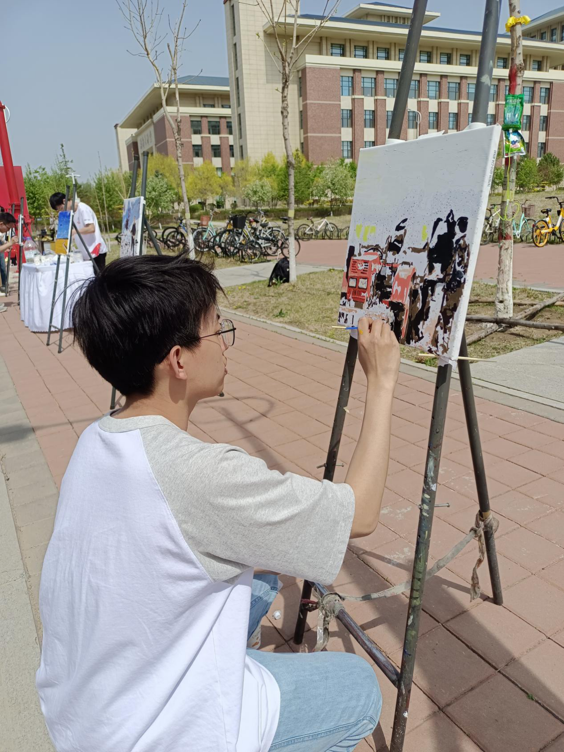 志愿者同学们积极引导参与活动的师生们在事先准备完毕的画布上挥动画笔,留下青春的色彩。
