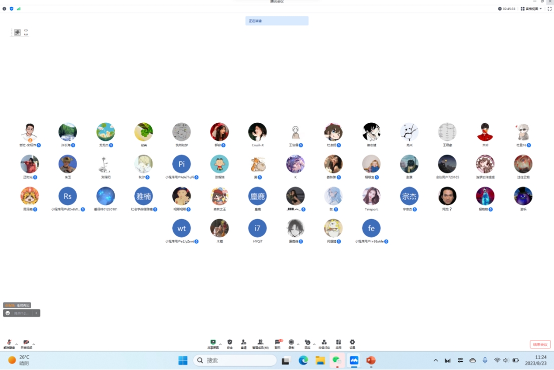 2023级本科新生辅导员宋绍伟老师主持,全体辅导员助理和2023级本科生出席并进行线上交流。