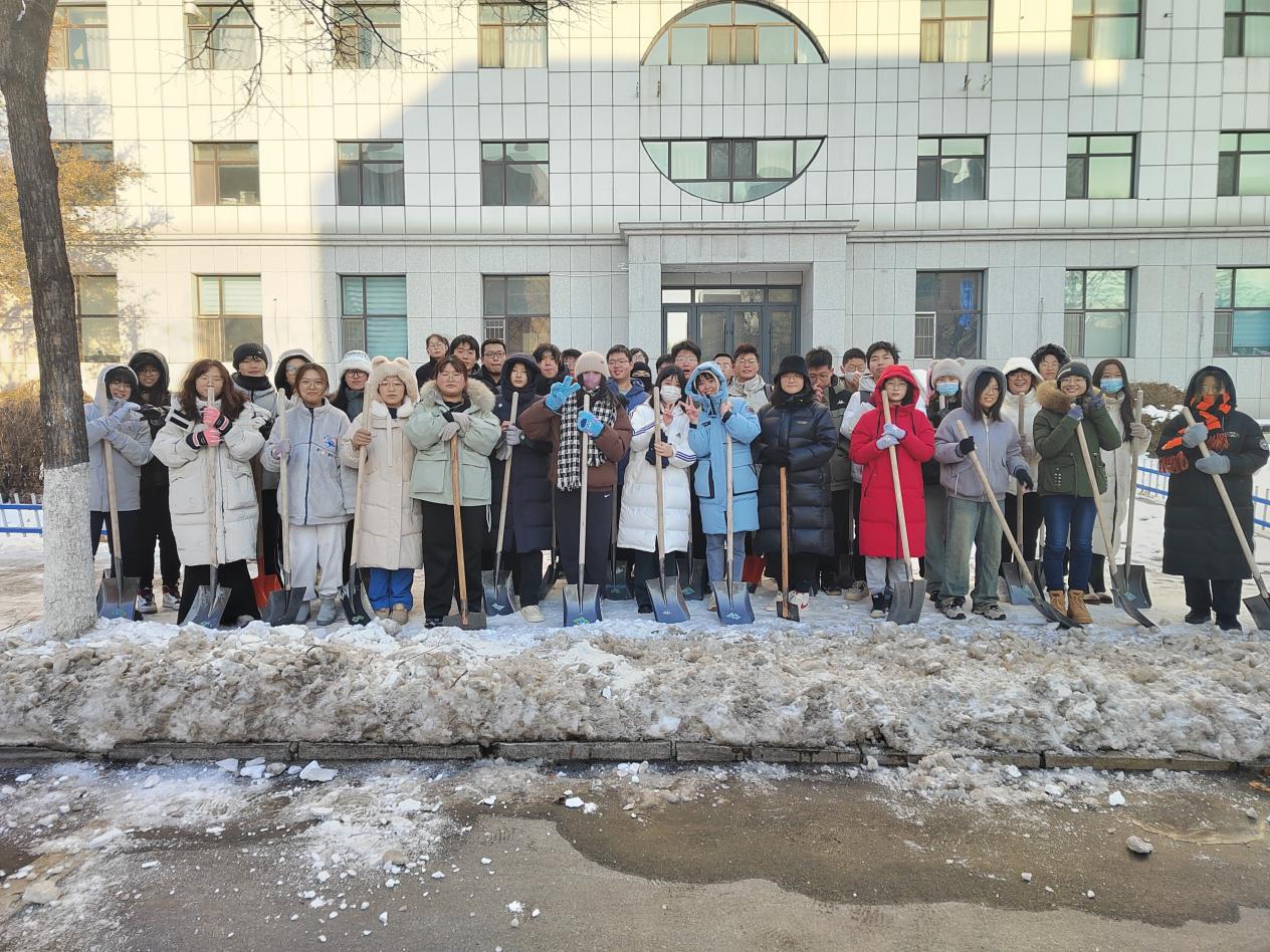 组织本科生各党支部学生党员、各学生组织和M·M学习研究会学生成员、各年级各班级主要负责人和2023级本科生“星火燎原”积极分子共计50余人,利用课余休息时间开展路面积雪清扫活动。