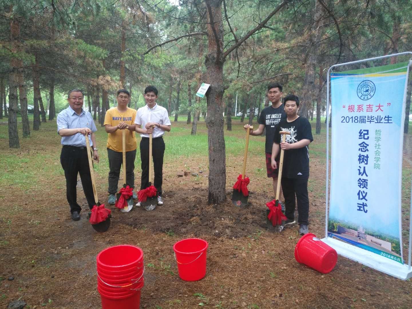 于2018年6月14日下午15时30分,在中心校区经济与信息中心楼前,成功举办“根系吉大”——2018届毕业生纪念树认领仪式。H视频
