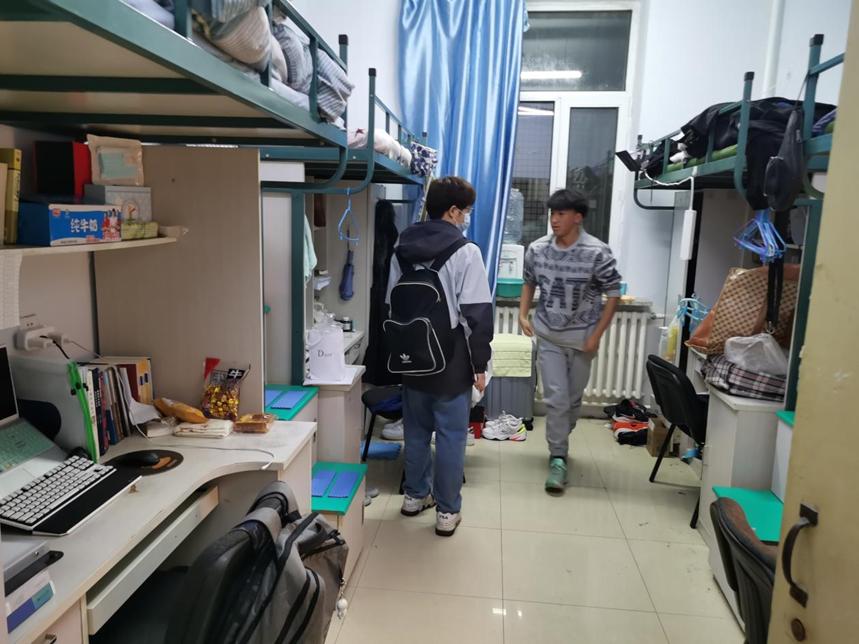 本科生居住宿舍分发防疫物资,并开展寝室安全卫生检查。