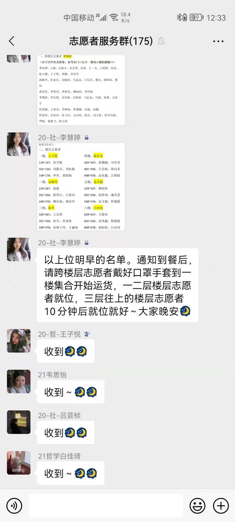 志愿者也会帮助其他学院进行防疫工作,将H视频