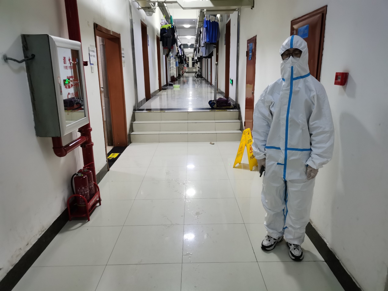 的男同学们同样积极响应学校学院疫情防控政策,志愿者们每天的工作是引导疏散走廊人群,提醒同学们不要聚集,按照要求做好消毒防护工作。那一声声的殷切叮嘱:“同学快点走,不要在走廊逗留!”;一声声亲切关怀:“同学们,你们的饭来啦。”——传递着志愿者们心中的战“疫”必胜的决心,那一个个坚毅的背影无疑也成了这场战斗中最帅气的背影。