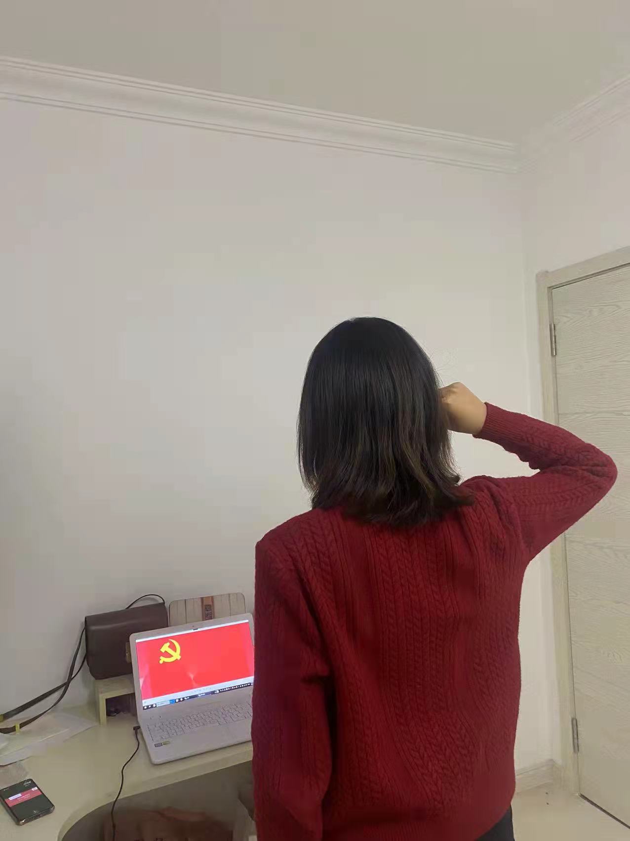 第二部分主题为“践行使命,不负初心”。首先,由20级本科生李慧婷同志作了吉大哲社师生和党员的抗疫事迹宣讲。李慧婷在发言中表达了对所有参与志愿服务的哲社志愿者、医护人员以及宿舍阿姨的感谢,接着李慧婷提到抗疫工作尚未结束,这场没有硝烟的战争也还在继续。她会尽自己的全力带领我们哲社最美志愿者团队,在为南四公寓同学们服务的征途上继续奋斗。然后,由18级本科生林之乐同志带领第二党支部全体党员重温入党誓词,在那一声声中“我志愿加入中国共产党”的铮言中,每一位党员都热情似火,眼神坚定,声声誓言传递着必然战胜疫情的决心。