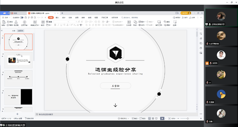 优秀毕业生代表杜晨赫和王雪松为同学们就选调生备考与工作体会做经验分享。