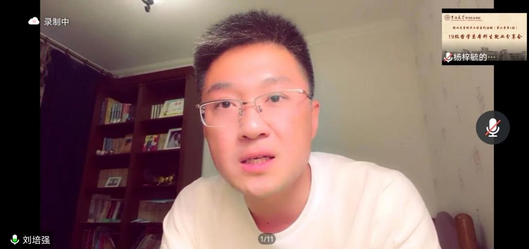 哲学系各位老师、学院党委副书记兼副院长刘培强老师以及2019级、2020级哲学专业的本科生参加了班会。班会有由本科生班主任哲学系田冠浩教授主持。