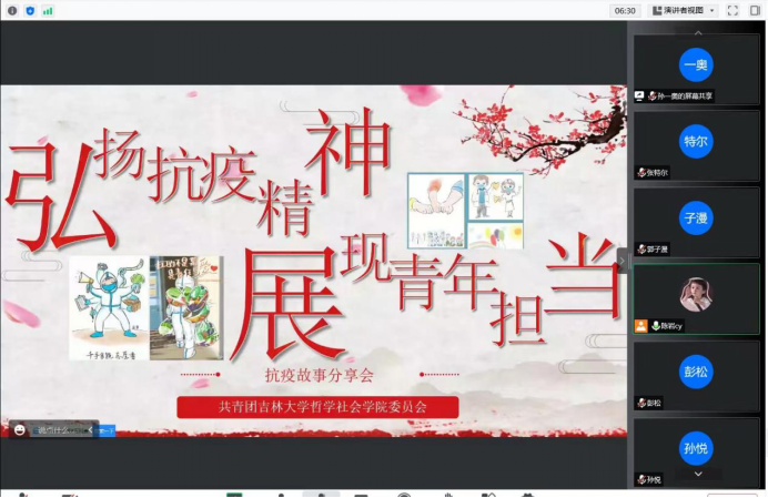 团委召开“弘扬抗疫精神,展现青年担当”线上抗疫经验分享会。本次会议由陈岩同学主持,辅导员宋绍伟老师和全体22级本科生参会。本次会议还特别邀请了H视频